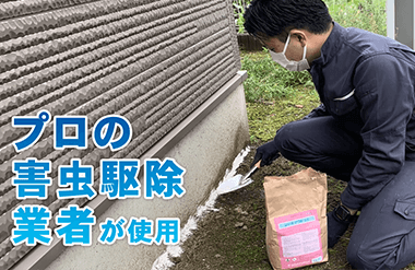 | 使用方法 | 帯状散布 家の周囲(犬走りの外側)に沿って、5~10cmの幅で散布(10mの長さで200gほど使用) 全面散布 発生場所に1m2あたり20~30g散布 |