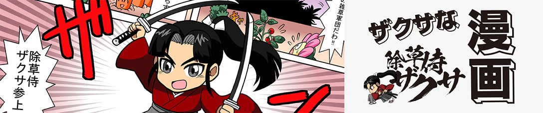 ザクサな漫画のご紹介。悪の雑草軍団を疾風のごとく退治する除草侍ザクサ!